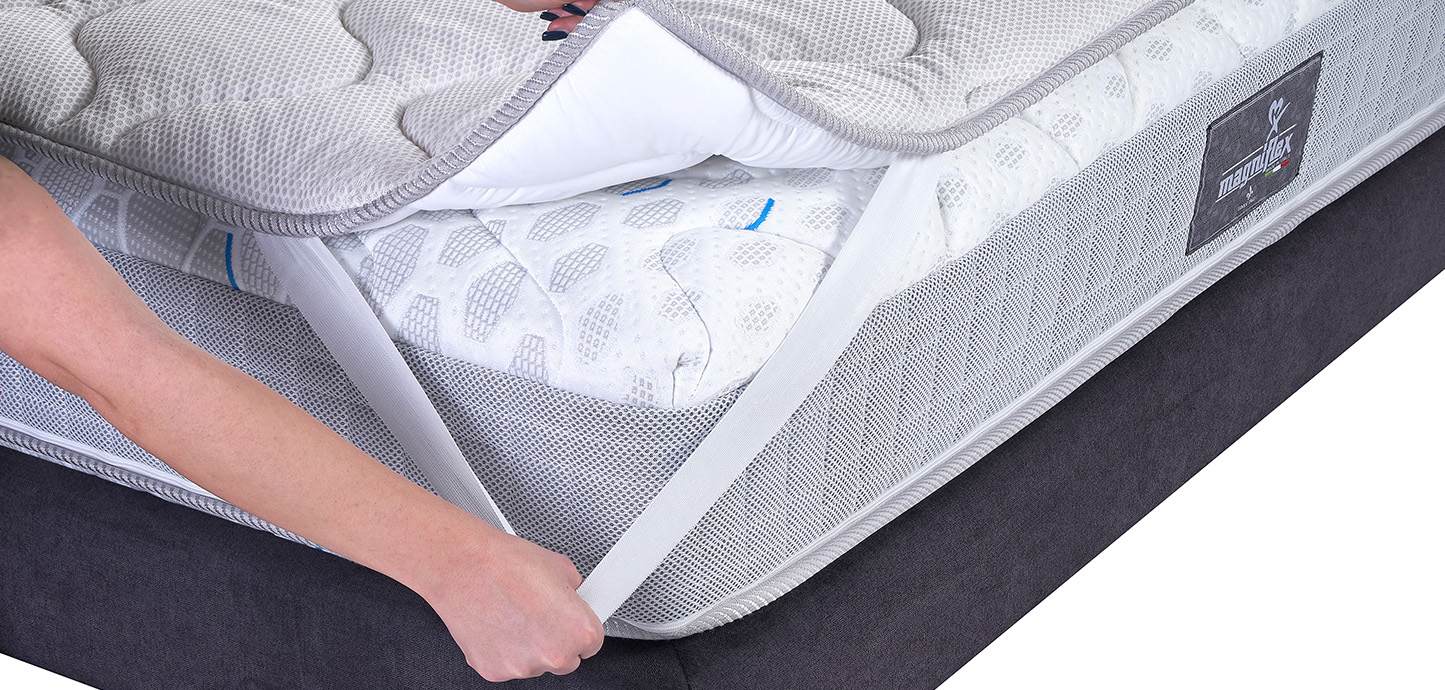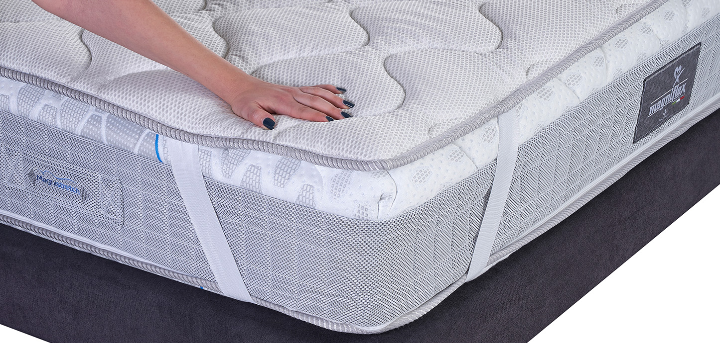 The Magnicool 3D Topper, with fresh, breathable and thermoregulating fabric, was created to adapt perfectly to the body and, thanks to the massaging process, regenerates the body’s microcirculation with a constant action during rest.